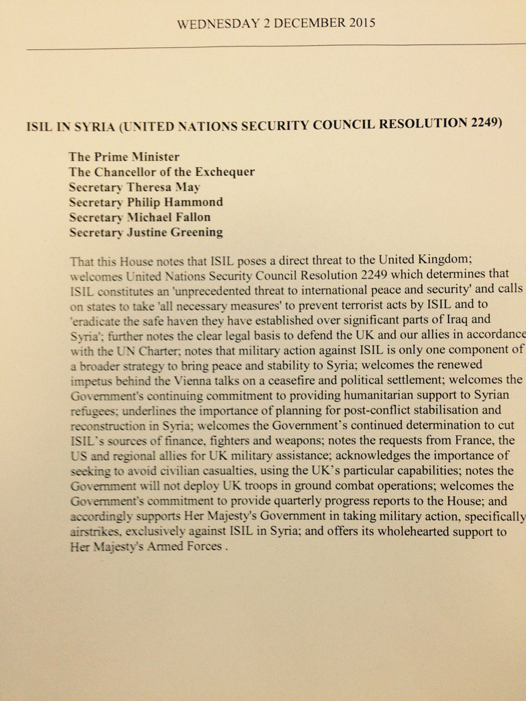 First, there is no tactical plan for taking control of the area of Syria currently occupied by Daesh should bombing be successful in dislodging them, (which itself is questionable, given that bombing of that area by 11 other countries has continued for over 15 months). There are not competent, relevant or motivated ground troops who are sufficient to the task at present.